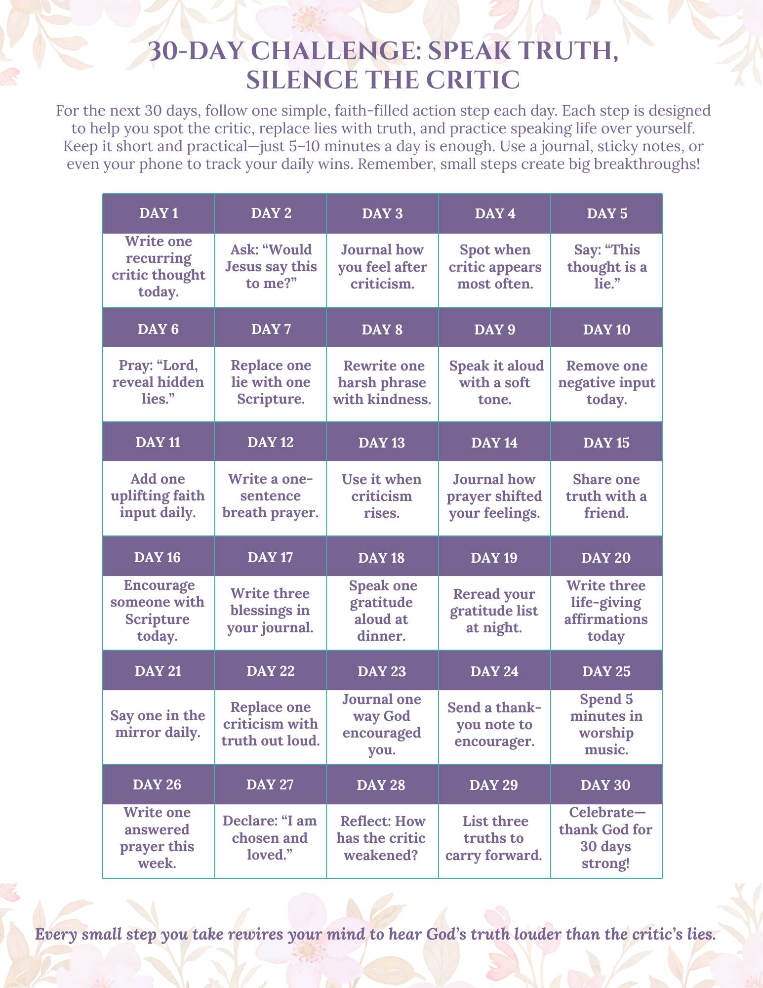 This challenge gives you a gentle, structured way to rebuild your inner world—one Scripture, one thought, one moment of peace at a time.